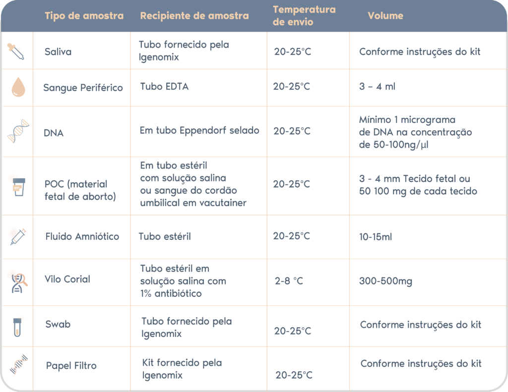 A análise NGS pode ser realizada a partir de diferentes tipos de amostra. Entre em contato com a Igenomix para um atendimento individualizado.