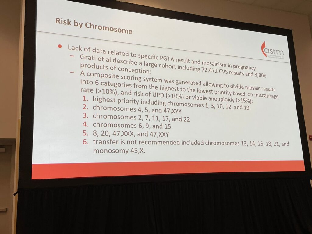 Ao considerar a transferência de embriões em mosaico, é fundamental uma análise detalhada das opções e incluir os pacientes na discussão e decisão. Uma das opções nessa situação é selecionar seguindo as orientações das sociedades tendo como base o cromossomo envolvido.